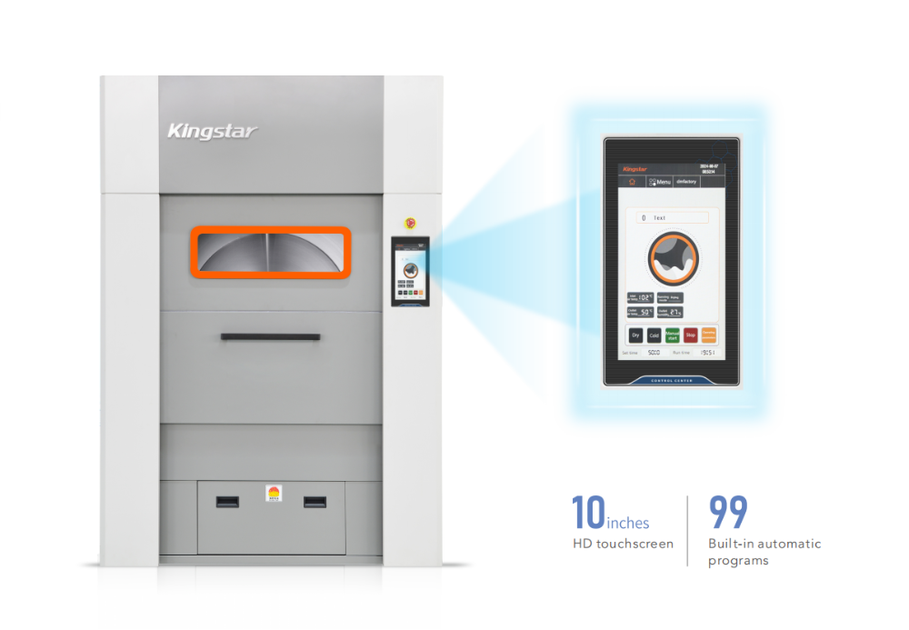 ❑ برنامه های خشک کردن: از نظر برنامه ها، کینگ استار 100 kg dryer از یک صفحه نمایش لمسی تمام رنگی 10 اینچی استفاده می کند که می تواند 99 برنامه خشک کردن را ذخیره کند. پارامترها در هر برنامه نیز قابل تنظیم هستند. هنگام خشک کردن، خشک کن از کنترل سه حالته استفاده می کند: زمان، دما و رطوبت.